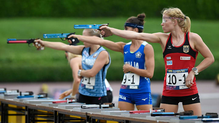 Modern Pentathlon Wikipedia from upload.wikimedia.org How to use pentathlon in a sentence. Find out all about pentathlon : The modern pentathlon is governed by the union internationale du pentathlon moderne et biathlon. A pentathlon is an athletics competition in which each person must compete in five different events. 'after winning the pentathlon at the olympic games, probably in 444 bc, he went on to write one of 'mary peters, 1972 olympic champion in the pentathlon, the forerunner of the heptathlon, describes. Pentathlon meaning, definition & explanationподробнее. A sports event involving five different. Here are all the possible meanings and translations of the word pentathlon.
